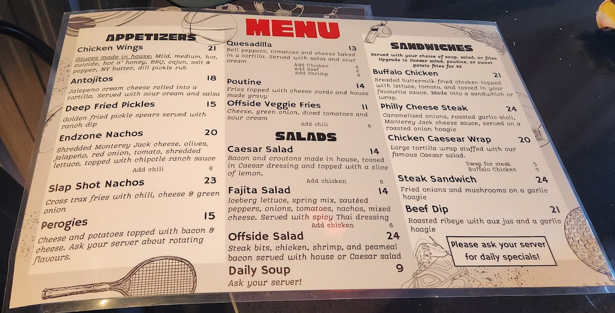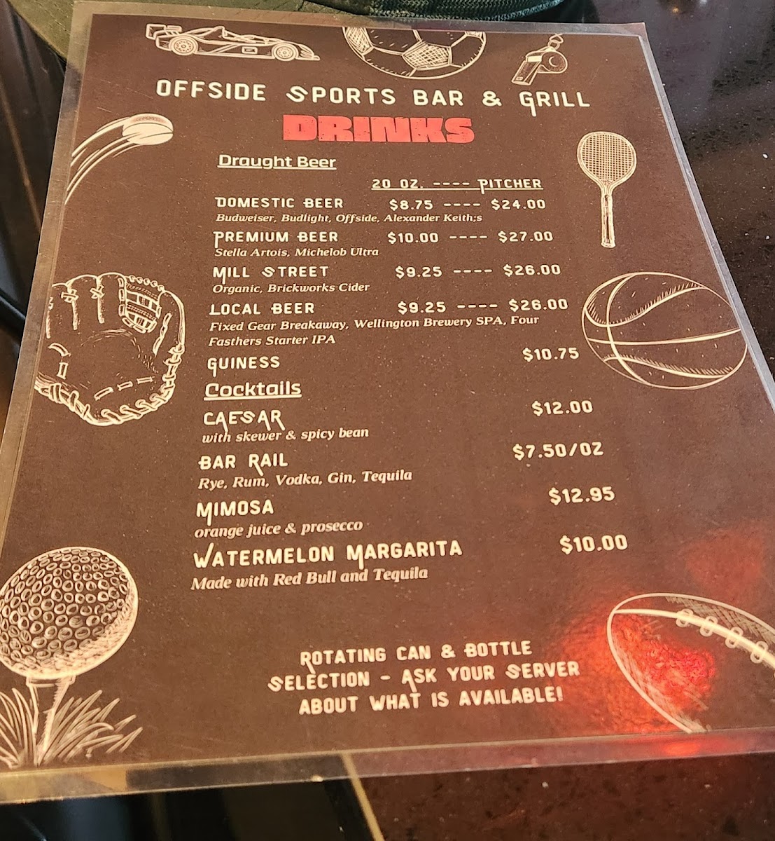 In summary, Offside’s menu captures the heart of a true Canadian sports bar: comfort food, great drinks, and a welcoming, game-day atmosphere that keeps you coming back for more.